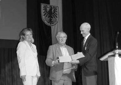 Sem Simkin: Der Kulturpreisträger Sem Simkin besuchte zum ersten Mal Berlin und war überwältigt. So schön hatte er sich die Stadt nicht vorgestellt. Überwältigt war er auch von der Kulturpreisverleihung, da er mit so vielen Zuhörern nicht gerechnet hatte. Auch nicht mit dem großen Interesse an seinen Büchern. Die wenigen Exemplare wechselten innerhalb der ersten Signierstunde ihren Besitzer. Es dürfte Sem gelungen sein, eine Brücke der Freundschaft zu schlagen. In seiner Dankesrede drückte Simkin seine Empfindungen aus: „Ich bin der Landsmannschaft Ostpreußen sehr dankbar dafür, daß sie mir mit ihrem Kulturpreis eine solch hohe Auszeichnung verleiht. Um so mehr, da es für mich eine große Überraschung war. Persönlich danke ich Frau Rauschenbach für die freundlichen Worte über mich und meine Arbeit. Um eine Zukunft zu haben, muß man die Vergangenheit kennen und lieben. In letzter Zeit ist in Kaliningrad ein sehr großes Interesse an der Geschichte dieses Landes erwacht. Neben unseren russischen – weltlichen wie religiösen Feier- und Gedenktagen – feiern wir auch die deutschen Gedenktage (sieben an der Zahl) wie