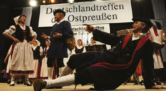 »Geben Sie Königsberg seinen Namen« Niebusch, Kusse, Tulle, Unwillpiche / Plimball, Schuggere, Wanagruppchen, / Kickwede, Dede, Karzamupchen / Michel, Mauschel, Dargen, Zwier / sie sind unserer Heimat Zier“ – viele im Saale sprechen den Kinderreim leise mit. Ostpreußen ist unvergessen. Was man als Kind gelernt hat, vergißt man nicht, die ostpreußischen Dorfnamen leben weiter. Die Rede des Sprechers der Landsmannschaft Ostpreußen geht ihrem Ende zu, und gleich werden 6.000 Landsleute Wilhelm v. Gottberg mit heftigem Beifall für seine entschlossenen Worte danken. Viel mehr Menschen hätten nicht in die Halle 25 auf der Berliner Messe gepaßt, dem Zentrum des 19. Deutschlandtreffens der Ostdeutschen mit seinen 15.000 Besuchern an Pfingstsonnabend und Pfingstsonntag. Zuvor hatte v. Gottberg an den neuen russischen Präsidenten Medwedjew und Ministerpräsident Putin appelliert, sich dafür einzusetzen, daß Königsberg seinen alten Namen zurückerhält. Außerdem sollte die Stadt am Pregel als Sitz der Organisation für Sicherheit und Zusammenarbeit in Europa (OSZE) eine angemessene Aufgabe übernehmen. Der Blick zuvor über die Jahrhunderte preußischer und ostpreußischer Geschichte hatte die historischen Höhepunkte berührt, wissenschaftliche und kulturelle Glanzleistungen ins Licht gerückt. Und als Mahnung aus der Geschichte eine politische Großtat des preußischen Königs Friedrich Wilhelm I.: Er hatte für die aus Salzburg nach Preußen geflüchteten Menschen die Entschädigung ihres Eigentums erstritten. Und heute? Sprecher v. Gottberg beklagte die devote Haltung der Bundesregierung und hielt fest, daß die Frage der Entschädigungen auf dem Tisch bleibt. Begonnen hatte die Großkundgebung zum Deutschlandtreffen nach der Totenehrung und dem Einzug der Fahnenstaffel mit einer bestens gelaunten Christa Stewens. Die bayerische Staatsministerin bekannte, sie habe nur einen Moment gezögert, die Festrede für dieses Ostpreußentreffen zu übernehmen – eine „Frau mit sechs Kindern und 19 Enkelkindern hätte an diesem Tag vielleicht auch etwas anderes vorhaben können“. Natürlich, denn der Muttertag fiel dieses Jahr auf Pfingsten. Pflicht bleibt Pflicht, schließlich ist Bayern seit jetzt genau 30 Jahren Patenland – und weil sich der Freistaat weiterhin zu Ostpreußen bekennt: „Die Kulturgeschichte aller Deutschen ist die Klammer unserer Nation“, meinte Christa Stewens. Und nicht nur, weil Muttertag war: Die Staatsministerin würdigte die besondere Leistung aller Frauen, die über die Leiden und Strapazen von Flucht und Vertreibung hinweg bei der oft schwierigen Eingliederung die Familien zusammengehalten hatten. Alle Gedankengänge auf diesem Ostpreußen-Treffen laufen auf die Frage zu, wie man in der Welt ein Zeichen setzen kann, daß Vertreibungen oder ethnische Säuberungen nicht mehr hingenommen werden. Und wie ein „Zentrum gegen Vertreibungen“ zu einer Stätte der Trauer und Erinnerung aufgebaut werden soll, im dem „gesagt werden darf, was wahr ist“ (Christa Stewens). Ganz im Einklang mit den Zuhörern rief die Staatsministerin aus, daß „die nationale Erinnerungskultur nicht von der Kooperationsbereitschaft der Nachbarn abhängig gemacht werden kann“. Und: Allein der Umstand, daß in den Nachbarländern noch verschiedene Deutungen zur jüngsten Geschichte existierten, zeige, wie wichtig ein „Zentrum gegen Vertreibungen“ sei.