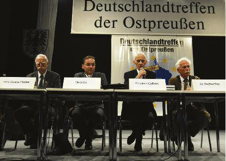 Für dieses „Zentrum gegen Vertreibungen“ lohnt es sich zu streiten. Auf der sehr gut besuchten Podiumsdiskussion am Pfingstsamstag hatten Wilhelm v. Gottberg, Oliver Dix aus dem BdV-Präsidium, Siegfried Pelz, langjähriger Kreisvertreter für Heiligenbeil, und Hans-Günther Parplies, langjähriges BdV-Vorstandsmitglied, der BdV-Präsidentin Erika Steinbach allen Respekt gezollt, wie sie unermüdlich acht Jahre hindurch das Vorhaben betrieben hatte. Bis schließlich die Bundesregierung im März 2008 zu ihrem Wort stand und die Errichtung eines „Sichtbaren Zeichens“ beschloß. Einigkeit herrschte auch in der Runde, daß man sich auch weiterhin energisch gegen die Störversuche der linken Widersacher Wolfgang Thierse, Markus Meckel oder Gesine Schwan wehren muß, damit das „Sichtbare Zeichen“ auch zu einem würdevollen Zentrum gegen Vertreibungen aufgebaut wird. Gestritten werden kann um die Rolle, die der Staat bei dieser Gedenkstätte übernehmen soll. Auf der einen Seite Siegfried Pelz – für ihn soll das „Zentrum gegen Vertreibungen“ kein Dokumentationszentrum werden, sondern allein eine Gedenkstätte für die Opfer von Flucht und Vertreibung, „und da lassen wir uns vom Staat nicht hineinreden“. Hans-Günther Parplies auf der anderen Seite: Es könne gar nicht genug Gedenkstätten im Land geben, zum Gedenken an die Opfer. Aber es sei Aufgabe des Staates, das „Zentrum gegen Vertreibungen“ als das Gedächtnis der Nation aufzubauen, denn sonst drohe, daß wir „die Erinnerung an die Vergangenheit verlieren“. Die nächste Generation müsse das Schicksal der Nation begreifen können. Die damals veranschlagten Kosten, heute in Euro 80 Millionen, müsse der Staat mittragen. Und das Zentrum solle auch durch einen Konsens der großen Parteien gesichert werden, damit die Entscheidung für das „Sichtbare Zeichen“ nicht bei einem Regierungswechsel umgestoßen werden könne. Wilhelm v. Gottberg forderte zur Wachsamkeit auf, wie das „Zentrum gegen Vertreibungen“ inhaltlich gestaltet werde. Die ersten Überlegungen zum historischen Kontext seien beunruhigend, denn: „Was haben die in aller Welt bekannten Schandtaten der Nazis mit einer Gedenkstätte gegen Vertreibung zu tun?“ Natürlich müsse BdV-Präsidentin Erika Steinbach in den Gremien des Zentrum mitwirken, darüber hinaus müßten aber auch die Landsmannschaften berücksichtigt werden. Auch Oliver Dix setzt sich dafür ein, daß neben Erika Steinbach eine angemessene Anzahl von weiteren Repräsentanten der Vertriebenen in die Entscheidungen eingebunden wird. Denn die deutschen Opfer von Flucht und Vertreibung hätten ein Anrecht auf eine würdevolle Darstellung der eigenen Geschichte, die „alle Zusammenhänge seit dem 19. Jahrhundert“ umfassen müsse. |