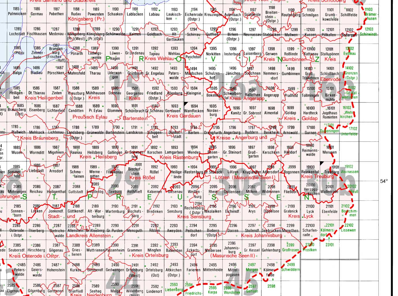 historische topografische Karten der deutschen Ostgebiete Meßtischblatt-Übersicht 6