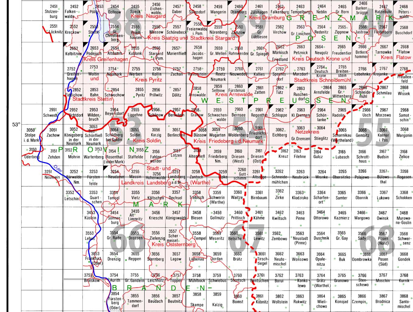 historische topografische Karten der deutschen Ostgebiete Meßtischblatt-Übersicht 7