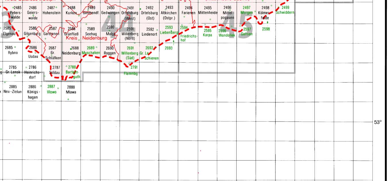 historische topografische Karten der deutschen Ostgebiete Meßtischblatt-Übersicht 9