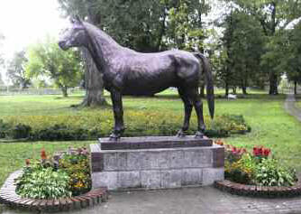 Anlässlich des 200-jährigen Bestehens des Hauptgestüts Trakehnen/Ostpreußen und dessen Verdienste für die Pferdezucht beauftragte die Preußische Gestütverwaltung Berlin den Bildhauer Prof. Reinhold Kuebart mit dem Guss der lebensgroßen Bronzestatue des Trakehner Hauptbeschälers Tempelhüter und machte diese dem Hauptgestüt 1932 zum Geschenk. Bis 1945 stand sie vor dem Land-stallmeister-Haus und wurde dann von der Roten Armee nach Moskau verbracht, wo sie heute im Museum der Landwirtschaftlichen Akademie zu betrachten ist. Der steinerne Sockel der Statue verblieb in Trakehnen und wurde als Ehrenmal besetzt mit einem Findling, in dem das Seitenprofil eines Stahlhelm tragenden Rotarmisten eingeschlagen war. Seit 2007 bemühte sich Hagen Mörig, Gründer und 1. Vorsitzender des Fördervereins „Hilfe für Trakehnen e. V.“, durch Konsultationen mit dem Regierungsduo der Russischen Föderation Medwedjew und Putin um die Rückführung des Tempelhüters nach Trakehnen, [Jasnaja Poljana]. Ein Ortswechsel der Originalstatue war jedoch nicht verhandelbar. Es wurde ihm nach Vorlage von 11000 Petitionsunterschriften schließlich zugestanden, auf eigene Kosten eine Kopie gießen und in Trakehnen aufstellen zu lassen, wobei die Aufstellungsmodalitäten in die Zuständigkeit der Regionalregierung der Oblast Kaliningrad gelegt wurden. Die Schwierigkeiten eines Ortswechsels des Ehrenmals auf dem Sockel vor dem Landstallmeister-Haus konnte Mörig schließlich ausräumen und so stand der Aufstellung des zirka 40000 Euro teuren, aus Spenden finanzierten Abgusses nichts mehr im Wege. Unter großer Anteilnahme und erkennbarer Akzeptanz der Einwohner von Trakehnen, vielen angereisten deutschen Gästen, sowie Mandatsträgern der Regionalverwaltung, des Pferdesports und der Wirtschaft wurde die Enthüllung der Statue durch Bürgermeister Bilinski, Hagen Mörig und Dr. Kuebart, dem Großneffen des Bildhauers der Originalstatue, vorgenommen. Das sich anschließende, von der Bevölkerung und der Deutschen Schule Trakehnen liebevoll gestaltete Festprogramm schloss um 20 Uhr mit einem Höhenfeuerwerk über Trakehnen. Möge dieses Licht Signal sein für den Aufbruch des kleinen Ortes Trakehnen in eine bessere und sich wirtschaftlich konsolidierende Zeit.