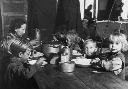 ihnen die Integration in die bundesdeutsche Gesellschaft erleichtern: Mutter mit Kindern im Flüchtlingslager Harkenbleck bei Hannover. |
