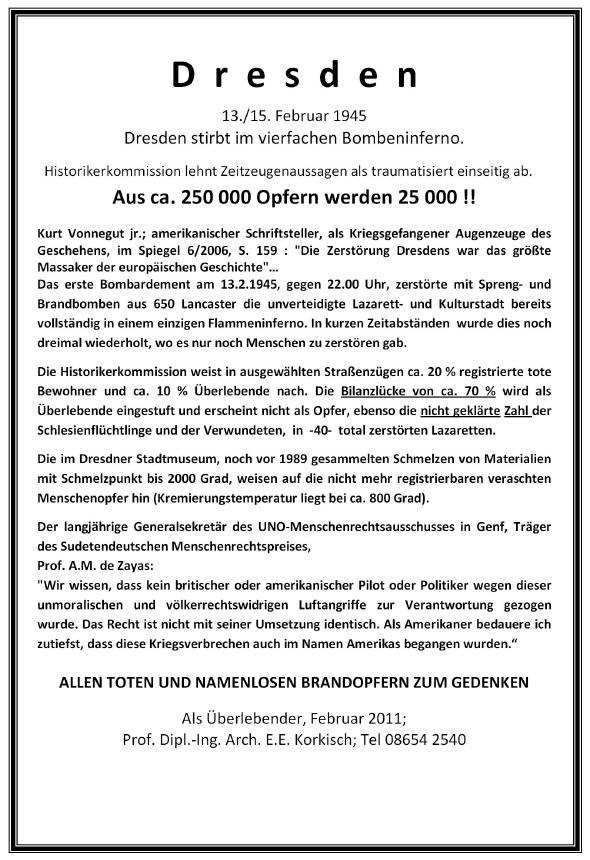 weitere Informationen: Luftangriffe auf Dresden https://de.metapedia.org/wiki/Luftangriffe_auf_Dresden Videos zu: Dresden 1945 www.youtube.com/playlist?list=PLO5K4tZzrQCkXa6kugFVOIpVYBYGG1DLD;