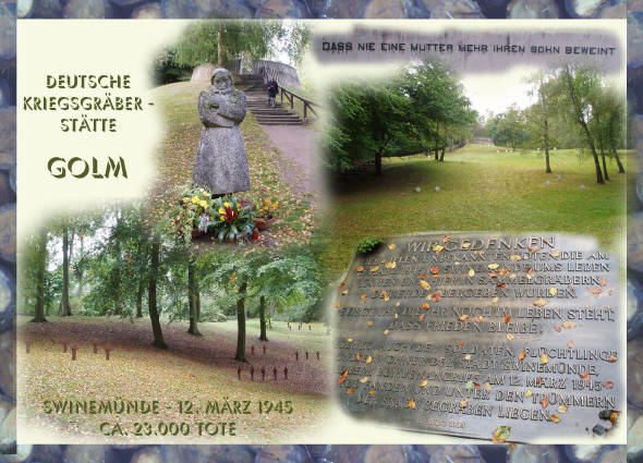2003 hat der Volksbund deutscher Kriegsgräberfürsorge die Organisation der Gedenkfeiern übernommen. Sie sind damit Teil des bundesrepublikanischen Gedenkbetriebs mit seinen leerlaufenden Gebetsmühlen geworden. Dietlinde Bonnlander, eine Überlebende von 1945, hat die Veranstaltung vom 12. März 2004 in der Pommerschen Zeitung bewegend geschildert: "Kein Redner konnte den Hinweis auf die deutsch-polnische Freundschaft auslassen, obwohl dieser Verweis hier nichts verloren hat, weil der Tag vor 59 Jahren in keinerlei Verbindung zu den heutigen Bewohnern von Swinemünde steht. Keiner konnte auf die Demonstration verzichten, die Städte Stettin, Gollnow und Swinemünde mit ihren heute polnischen Namen zu nennen. Auch das war ein unerträglicher Vorgang hier neben den Gräbern und in Anwesenheit so vieler Heimatvertriebener. (...) Sind nicht diese Besucher, zu denen ich mich zähle, in einer psychischen Ausnahmesituation, wenn sie an diesem Tag kommen und sind sie denn nicht auch wieder ein Jahr älter und müder geworden? Und dann sollen sie das über sie ergehen lassen, was Presse, Rundfunk und Fernsehen ebenso täglich bis zum Überdruß servieren?" Swinemünde ist ein Beispiel von vielen. In Abwandlung eines alten Glockenspruches ließe sich über das "gute Deutschland", das sich bei solchen Gelegenheiten feiert, sagen: Es verhöhnt die Toten, es erwürgt die Überlebenden, es kapituliert vor der Zukunft!