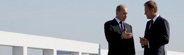 auch erwartungsvolle Aufnahmen von Vladimir Putin und Donald Tusk beim