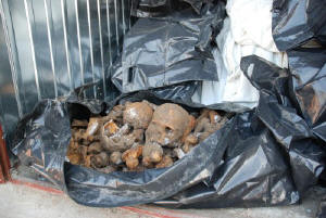 Knochen von 67 Toten aus dem Massengrab Ende Oktober 2008 auf dem kommunalen Friedhof