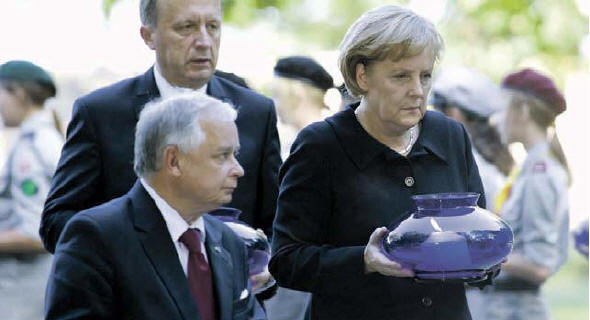 schwache Rede: Bundeskanzlerin Angela Merkel (CDU) und Polens Präsident Lech