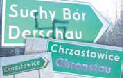 werden die Schilder mit Hakenkreuzen beschmiert (Derschau / Suchy Bór) oder mit