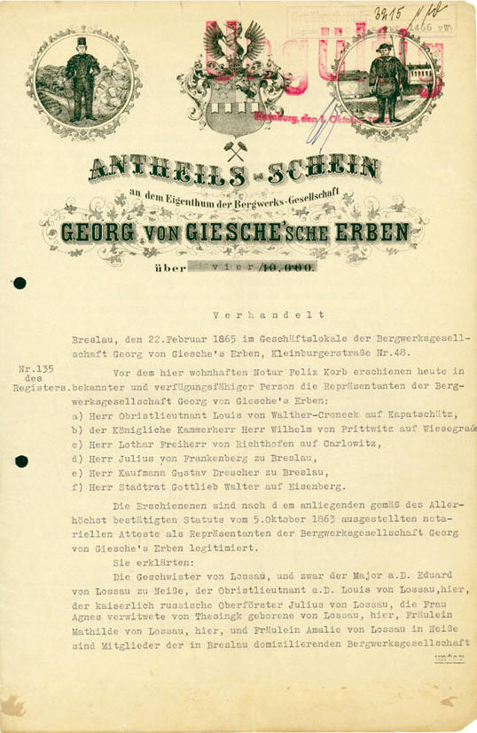 Eine Giesche-Aktie konnte man vor ein paar Jahren für um die 20 Euro erwerben. Ihr Wert steigt seitdem parallel zu den juristischen Erfolgen der "neuen Betreiber" dieses Unternehmens. 225.00 Euro wollen aktuell Ebay-Verkäufer und ein Leipziger Antiquariat für eine Giesche-Alt-Aktie haben. Vielleicht lohnt es sich ja so etwas zu kaufen .....