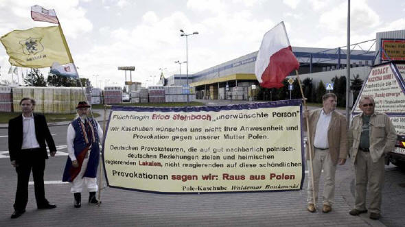 Für viele Polen war Vertriebenen-Präsidentin Steinbach lange ein rotes Tuch. Sie verdächtigten sie, die Kriegsschuld Deutschlands relativieren zu wollen. Vor allem in der Debatte über ein Zentrum gegen Vertreibung sorgten Äußerungen von ihr wiederholt für Empörung. Doch der Reizeffekt scheint sich abgenutzt zu haben. Bei einem Besuch in Polen traf sie vor allem auf Gleichgültigkeit. Von Ludger Kazmierczak, ARD-Hörfunkstudio Warschau Gerade mal sechs Demonstranten hatten sich vor dem Büro der deutschen Minderheit in Danzig in Stellung gebracht, um mit zwei Transparenten und einem Megaphon gegen den Besuch von Erika Steinbach zu protestieren. "Wir wollen von Frau Steinbach nichts als die Wahrheit. Sie soll endlich aufhören zu lügen und die Oder-/Neiße-Grenze nicht länger in Frage stellen." Zu mehr Widerstand haben sich die Polen nicht aufraffen wollen. Die Vorsitzende des Deutschen Bundes der Vertriebenen ist längst nicht mehr die Reizfigur, die sie mal war. Die CDU-Politikerin wird hierzulande eher als Problem für ihre eigene Partei denn als Belastung für das deutsch-polnische Verhältnis wahrgenommen. In ihrem Geburtsort Rumia in der Nähe von Danzig schlägt Erika Steinbach vor allem eins entgegen: Gleichgültigkeit. "Ich weiß, dass sie aus Rumia kommt, und mal für die Rückgabe von Eigentum gekämpft hat. Aber das ist schon lange her, wir sollten dieses Thema endlich ruhen lassen. Die Meinung über sie hier ist sicher eher negativ, aber eigentlich ist sie kein Thema für die Leute, eher für die Medien", sagte eine Frau. Und eine andere Frau fügte hinzu: "Wir sind nicht froh über diesen Besuch, aber vielleicht wird es eine demütige Verbeugung vor den Polen. Vielleicht wird dieser Besuch sie zum Nachdenken anregen." Bürgermeisterin an Treffen nicht interessiertBeim Besuch der Seemannskirche von Gdynia ließ sich der zuständige Priester nicht blicken. Und auf ihrem kurzen Spaziergang durch den Ort, in dem sie 1943 als Tochter eines deutschen Besatzungssoldaten geboren wurde, musste Erika Steinbach auf die Anwesenheit der Bürgermeisterin verzichten. Elzbieta Rogala Konczak hatte eine Begegnung an Bedingungen geknüpft, die der Gast aus Deutschland nicht erfüllen wollte. "Frau Steinbach hat mich um ein Treffen gebeten und ich dachte, wir könnten zunächst auf dem Friedhof von Rumia vor den Gräbern der polnischen Soldaten niederknien, die hier im Krieg gefallen sind. Danach hätten wir, wie das in Kaschubien so üblich ist, bei Tee oder Kaffee miteinander geredet. Frau Steinbach hat dieses Angebot jedoch abgelehnt, also werde ich mich nicht mit ihr treffen." Während Alt-Bundespräsident Horst Köhler vor zwei Wochen in seinem ostpolnischen Geburtsort mit großem Bahnhof empfangen wurde, haben die Polen Erika Steinbach nun die kalte Schulter gezeigt. Die Gründe für diese Ablehnung sucht sie nicht bei sich. "Weil ich Präsidentin des Bundes der Vertriebenen bin, wird ein Unterschied gemacht. Es ist ja auch der frühere Bundespräsident Richard von Weizsäcker mit hohen Ehren empfangen worden, obwohl er am 1. September 1939 als Soldat Polen mit überfallen hat. Aber man hat ihm trotzdem den roten Teppich ausgerollt." Wären die vielen Fernseh- und Fotokameras nicht gewesen, hätte sich Steinbach sehr einsam fühlen müssen. Immerhin gab es ein paar Vertreter der deutschstämmigen Bewohner Pommerns, die mit ihr reden wollten. Genau deshalb war sie offiziell auch nach Polen gekommen - nicht als Vertriebenenpräsidentin, sondern als Menschenrechtsbeauftragte der CDU/CSU-Bundestagsfraktion, die den Dialog mit der deutschen Minderheit sucht.