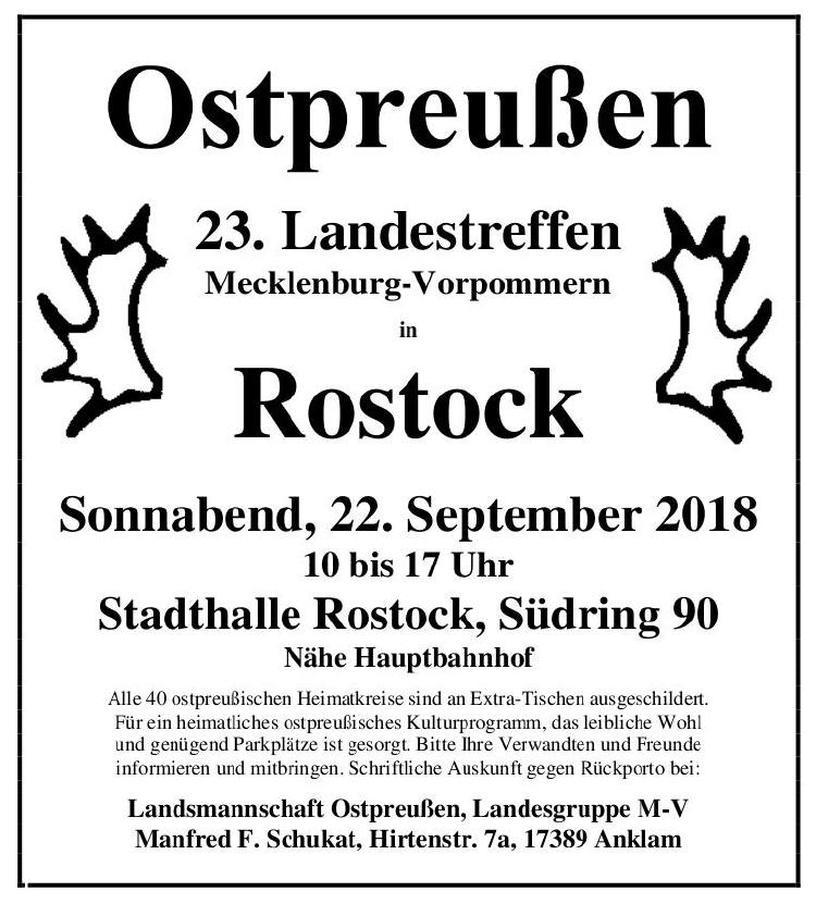 Landestreffen der Ostpreußen in der Stadthalle Rostock geplant.