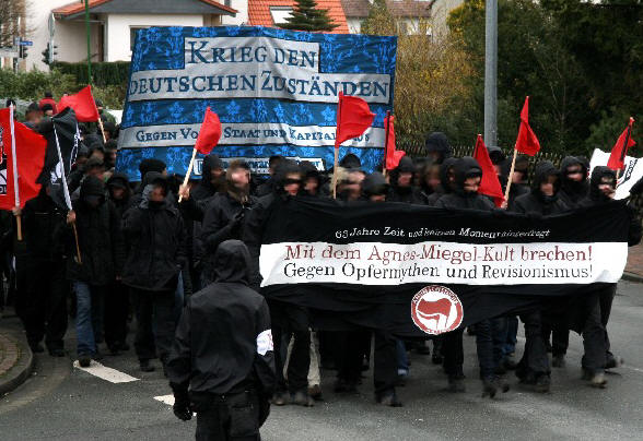 Späte Entrüstung Die Mitglieder der 1969 im niedersächsischen Bad Nenndorf gegründeten „Agnes-Miegel-Gesellschaft“, in der Mehrzahl ältere Frauen und Männer, überwiegend mit ostpreußischer Biografie, wußten kaum, wer diese 70 jungen Leute einer "Antifa"-Gruppe Weser / Deister / Leine waren, die am 1. März wild protestierend durch die Straßen zogen um sich dann, im Sprechchor „antifaschistische“ Parolen rufend, vor dem Hotel Hannover in der Innenstadt zu versammeln. In diesem Hotel fand die Jahrestagung der Gesellschaft statt, während ein unbekanntes „Bündnis gegen Agnes-Miegel-Verherrlichung“, das schon am 21. Februar das Agnes-Miegel-Denkmal im Kurpark „revolutionär“ verhüllt hatte, das Treffen zu verhindern suchte. Dank des umsichtigen Eingreifens der Polizei blieb es bei diesem Versuch. Die Jahrestagung vom 29. Februar bis 3. März, in der es um Agnes Miegels Lyrik ging, konnte ohne wesentliche Störung beendet werden, zumal die Mitglieder, während in der Innenstadt demonstriert wurde, ohnehin am Grab der geschmähten Dichterin auf dem Friedhof versammelt waren. Marianne Kopp, die Vorsitzende der 700 Mitglieder umfassenden Gesellschaft, bestreitet keineswegs, daß die geborene Königsbergerin Agnes Miegel (1879–1964), die „Mutter Ostpreußen“, wie sie nach 1945 von ihren heimatvertriebenen Landsleuten genannt wurde, dem Dritten Reich gegenüber freundlich gesonnen war und von den Nationalsozialisten gefördert wurde. Agnes Miegel ist 1916 mit dem angesehenen Kleist-Preis, den 1928 auch Anna Seghers zugesprochen bekam, ausgezeichnet worden, 1954 wurde sie zur Ehrenbürgerin Bad Nenndorfs ernannt, 1959 bekam sie den „Großen Literaturpreis“ der „Bayerischen Akademie der Schönen Künste“, und zum 100. Geburtstag 1979 wurde sie mit einer Briefmarke geehrt. Sie ist die letzte deutsche Balladendichterin und wird von der Literaturwissenschaft durchaus anerkannt. Das alles interessierte die angereisten Mitglieder des „Bündnisses gegen Agnes-Miegel-Verherrlichung“ freilich nicht, die bei strömendem Regen mit ihrem Schlachtruf „Mit dem Agnes-Miegel-Kult brechen! Gegen Opfermythen und Revisionismus!“ durch die Straßen des Kurorts zogen. Sie waren mit dem Weltgeist verbündet, hatten sie doch in Bad Nenndorfs Geschichte und Gegenwart nach „faschistischen Spuren“ gesucht und entdeckt, daß auch die ostpreußische Kreisgemeinschaft Wehlau immer dort tagt. Zunächst einmal hatte das Bündnis Schwierigkeiten, genügend Demonstranten zu bekommen, weil wegen des Sturms „Emma“ die Züge verspätet eingetroffen waren. Deshalb wurde auch auf das Schrei- und Pfeifkonzert vor dem „Agnes-Miegel-Haus“ verzichtet und nur die Kundgebung in der Hauptstraße abgehalten. Hier schimpften mehrere Redner auf Agnes Miegel und den „verharmlosenden Umgang“ mit ihrem dichterischen Werk, von dem sicher kaum einer der Demonstranten jemals eine Zeile gelesen hatte. Trotzdem hat sich das Bündnis hohe Ziele gesetzt: Es will dafür sorgen, daß die „Agnes-Miegel-Schulen“ in Düsseldorf, Osnabrück, Wilhelmshaven, Willich und die Agnes-Miegel-Straßen in Deutschland“ umbenannt werden.