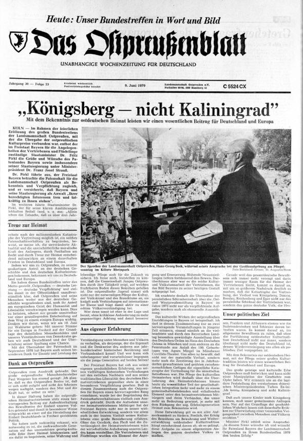 Zeitungen immer wieder nur Kaliningrad und Sowjetunion lesen muß, ist betrüblich