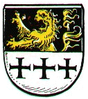 Löwen, unten in Silber nebeneinander drei schwarze Ordenskreuze. Der Löwe ist
