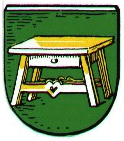 Das Wappen zeigt in Grün einen goldenen Tisch. Damit wird auf den Opfertisch der