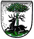 Das Wappen zeigt in Silber auf grünem Boden einen ruhenden, schwarzen Hirsch vor