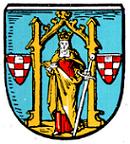 Wappen: In Blau, unter goldenem Zierbogen stehend, die