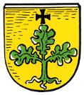 Das Wappen hat in Gold eine dreiblättrige grüne Eiche, darüber begleitet von